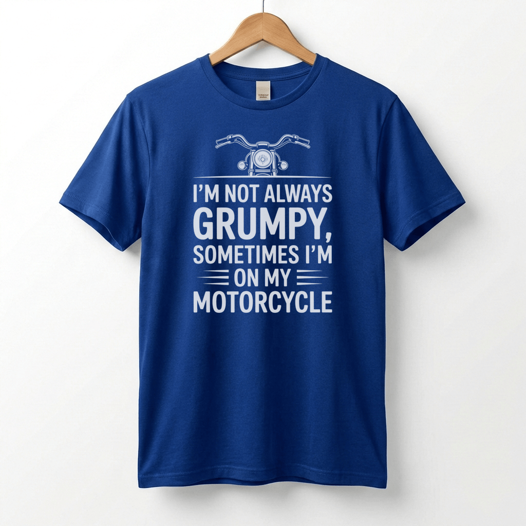 Slide into this soft tee and feel the rumble of the road. The design reads like a wink from a rider—grumpy only until the engine starts—so it lands with humor and a little attitude. Lightweight, breathable cotton and a neat crew neckline make it easy to throw on before a morning ride, a garage hang with friends, or a family barbecue. The print sits confidently on the sleeve and chest, made with crisp techniques that hold detail ride after ride. It’s a shirt that fits into a motorcyclist’s life: worn under a leather jacket, layered for cooler routes, or paired with worn-in jeans after a long day on the road. Give it for birthdays, Father’s Day, or holiday stockings when you want a present that reads like a nod to their bike-first mood.